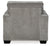 If style is the question, then this striking chair is the answer. Sporting clean lines and sleek track arms, the decidedly contemporary profile is enhanced with plump cushioning and a chenille-feel upholstery that's so pleasing to the touch. Rest assured, this chair in richly neutral alloy is sure to play well with so many color schemes.