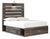 When merged in just the right way, rustic and industrial styles can make one happy marriage. Case in point: this full panel bed with storage. A refined take on barn board beauty, its complex, replicated wood grain showcases hints of burnt orange and teal tones for a sense of weatherworn authenticity. Love to read in bed? You’re sure to find the retro-chic light sconce and USB plug-ins on the open-slat style headboard such a bright idea. Underneath the bed: smooth-gliding drawers and open cubbies that accommodate casually cool storage bins.